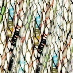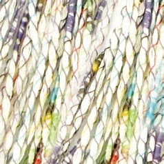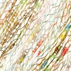 Se trata de una cadena de algodón envuelta en un fino hilo multicolor estampado que crea pequeños nudos de color a intervalos.