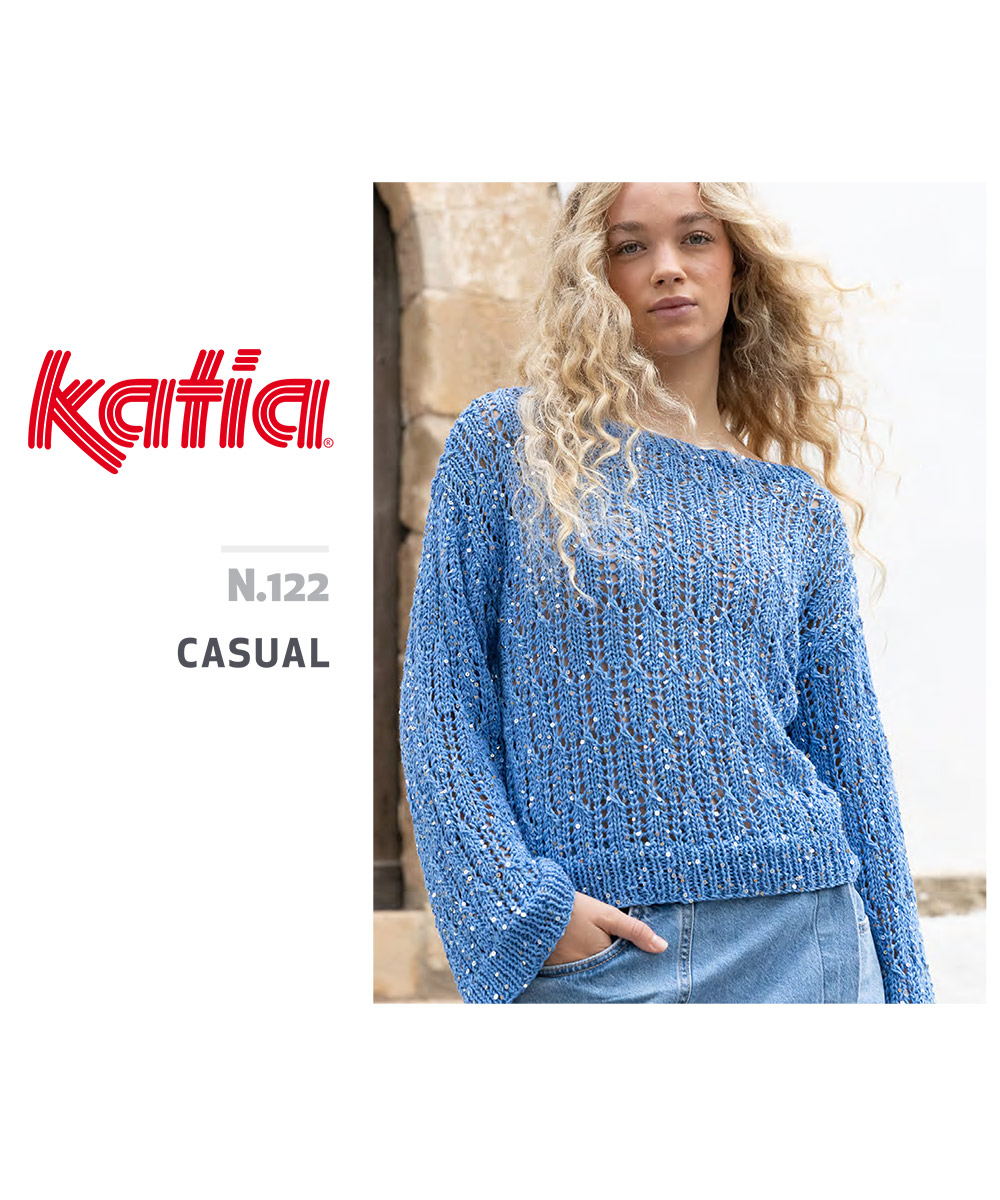 Revista Katia Casual 122 – 2026, exprésate con color y brillo con esta propuesta vibrante y completa que contiene 25 modelos de prendas y accesorios de punto y ganchillo para mujer y hombre.
